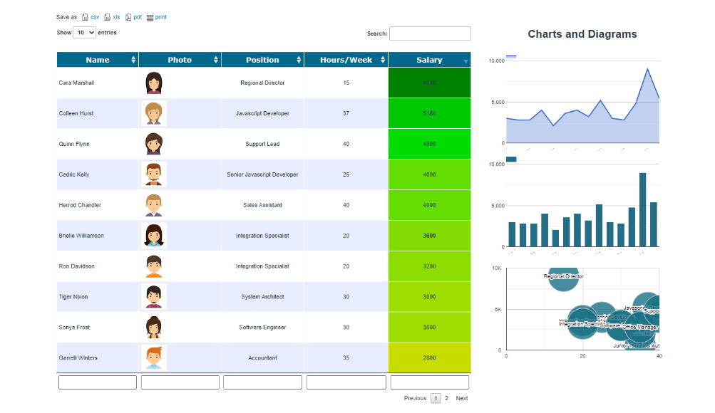 - In real-world applications, Data Tables Generator easily manages complex datasets with advanced functions for interactivity and engagement, and its server-side processing ensures efficiency with large volumes of data.