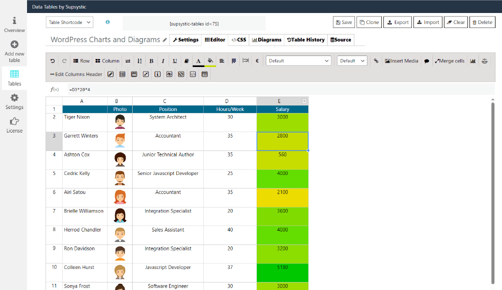 - WordPress Data Table Generator Plugin by Supsystic is a responsive WordPress table plugin, offering a range of features including charts, data import/export, and custom formulas, to enhance site design and user engagement.